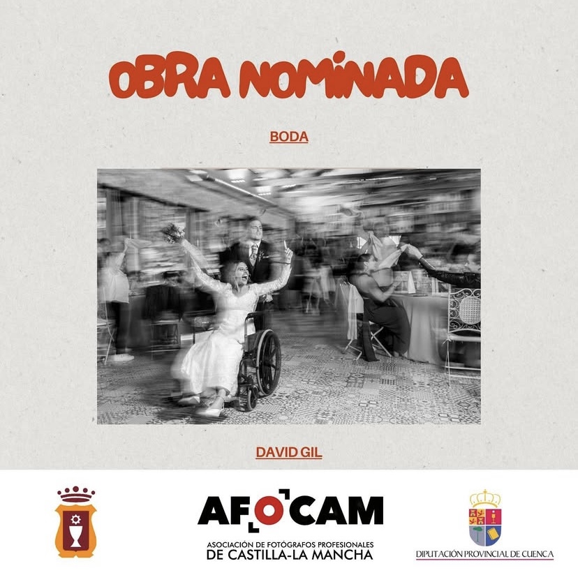 David Gil compite con dos obras en la categoría de Boda y dos en la categoría de Postboda, un reconocimiento que pone en valor su estilo natural, emotivo y artístico, centrado en capturar la esencia y la autenticidad de cada historia. De hecho, en la primera categoría lo hace con dos momentos reales de la boda de Edu y Beth en Somnifabrik (Valderrobres), mientras que en la segunda con dos fotografías de postboda en el Convento de Mirambel y el Castillo del Barón de Herbers.